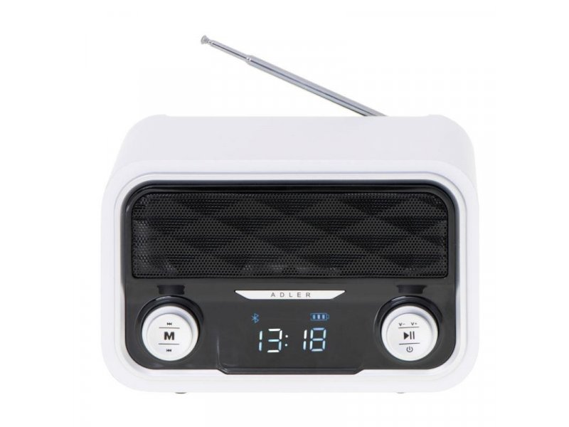 Adler AD1185 Radio Bluetotoh MP3 tranzistor nudi FM radio, Bluetooth 4.0, MP3 plejer, AUX i USB reprodukciju, uz elegantan dizajn, punjivu bateriju od 1800 mAh i memoriju za 50 stanica