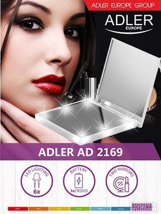 Adler AD2169W – Kozmetičko ogledalo Visoko – kvalitetno kozmetičko ogledalo sa led osvetljenjem. Olakšaće Vam svakodnevno šminkanje, možete ga koristiti kod kuće i u toku putovanja. Dimenzije: 69 x 69 x12mm. Napajanje: 2 x CR2025 baterije. Težina proizvoda: 0,15kg. Ukupna težina: 0,15kg. Dimenzije kutije: 7 x 2 x 7cm.