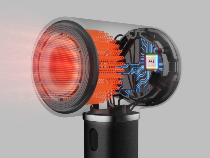 Zahvaljujući patentiranoj AI tehnologiji, fen automatski prilagođava temperaturu i protok vazduha prema udaljenosti i potrebama vaše kose. NTC senzor meri temperaturu 50 puta u sekundi, čime sprečava pregrevanje i oštećenje vlasi. Uz InfraCare infracrvenu tehnologiju i jonsku funkciju, kosa ostaje sjajna, zdrava i bez frizza.