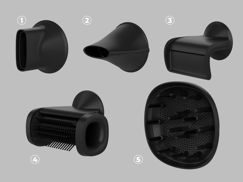 5 magnetnih nastavaka – difuzer, nastavak za ravnanje, četka i drugi.
