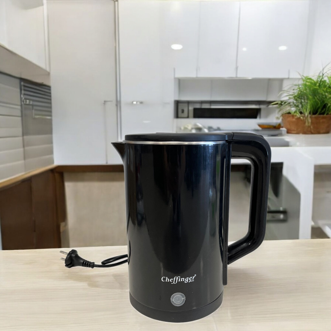 Cheffinger Crno kuvalo je savršen izbor za brzo i efikasno zagrevanje vode, kombinujući funkcionalnost, bezbednost i moderan dizajn. Sa kapacitetom od 2 litra, idealno je za pripremu toplih napitaka poput čaja, kafe ili instant supa, čineći ga pogodnim za kućanstva svih veličina.. Napravljen od visokokvalitetne plastike, Cheffinger Crno Kuvalo je lagano, ali izuzetno izdržljivo, što garantuje dugotrajan rad. Elegantni crni dizajn omogućava mu da se uklopi u svaki prostor, dodajući modernu notu vašoj kuhinji.. Ovo kuvalo nije samo estetski privlačno, već je i veoma sigurno za korišćenje. Opremljeno je automatskim isključenjem koje se aktivira kada voda dostigne tačku ključanja, kao i zaštitom od pregrevanja. Široki otvor za punjenje čini dolivanje vode jednostavnim, dok ergonomska drška omogućava sigurno i udobno držanje.. Karakteristike:. Kapacitet: 2 litra. Materijal: Visokokvalitetna plastika. Automatsko isključivanje i zaštita od pregrevanja. Široki otvor za punjenje. Ergonomska drška. Lako održavanje, odvojivi filter za kamenac. Garancija: 24 meseca. Prikazana cena uključuje PDV!. Napominjemo da se angažujemo kako bismo pružili najprecizniji opis proizvoda uz detaljne slike i cene. Međutim, moramo istaći da ne možemo garantovati potpunu tačnost svih informacija bez eventualnih grešaka.