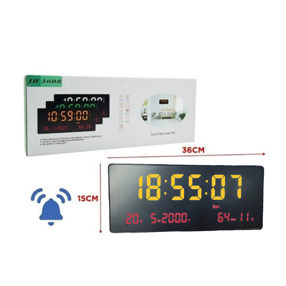Jednostavno, moderno i funkcionalno – LED digitalni zidni sat JH-3608 je sat koji kombinuje stil i upotrebljivost, savršen za svaki zid i prostor.