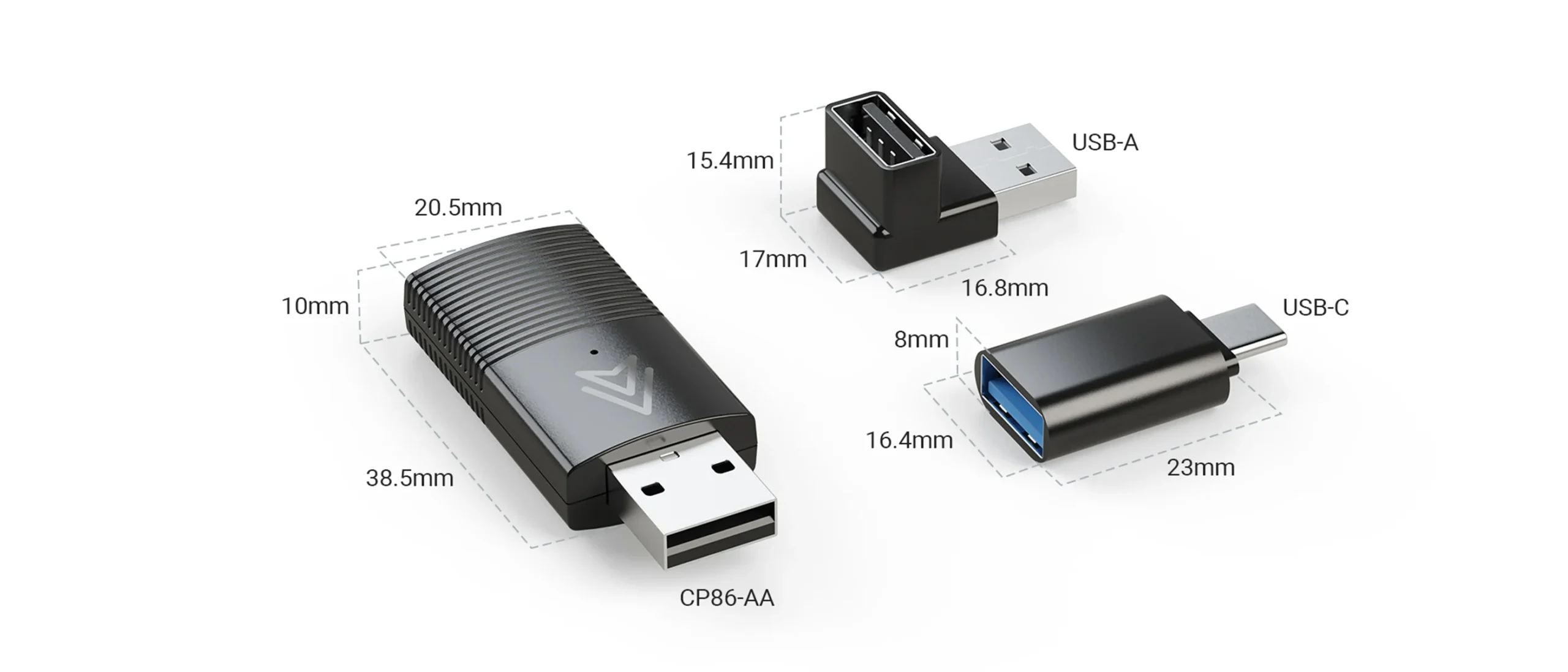 CP86 je kompaktan bežični adapter koji pretvara klasični CarPlay i Android Auto u potpuno bežični sistem. Samo ga uključiš i koristiš.
