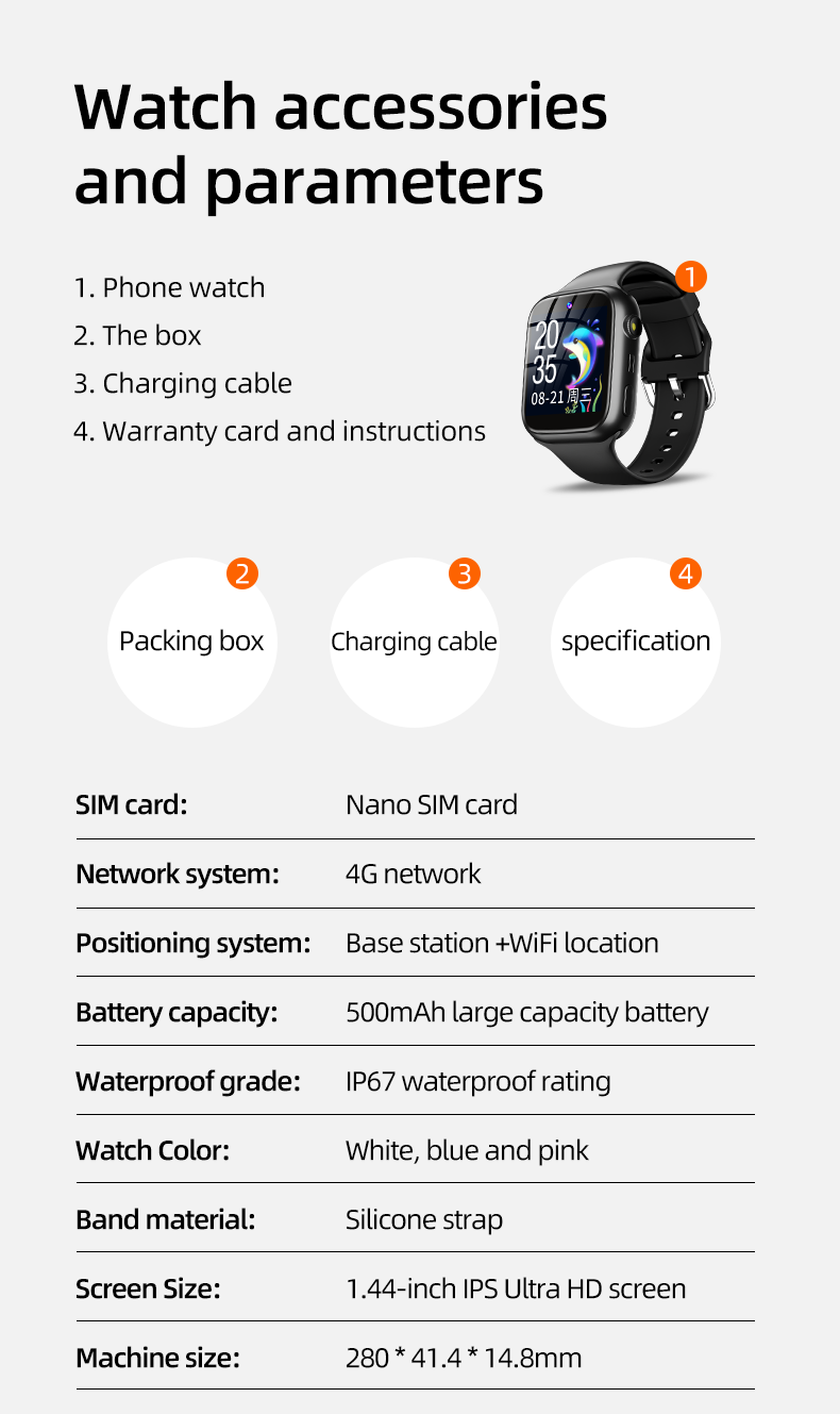 Sat ima HD kameru, mikro chat, glasovnog asistenta i interfon, a sve funkcije su lako dostupne preko 1.44 inčnog full touch ekrana.