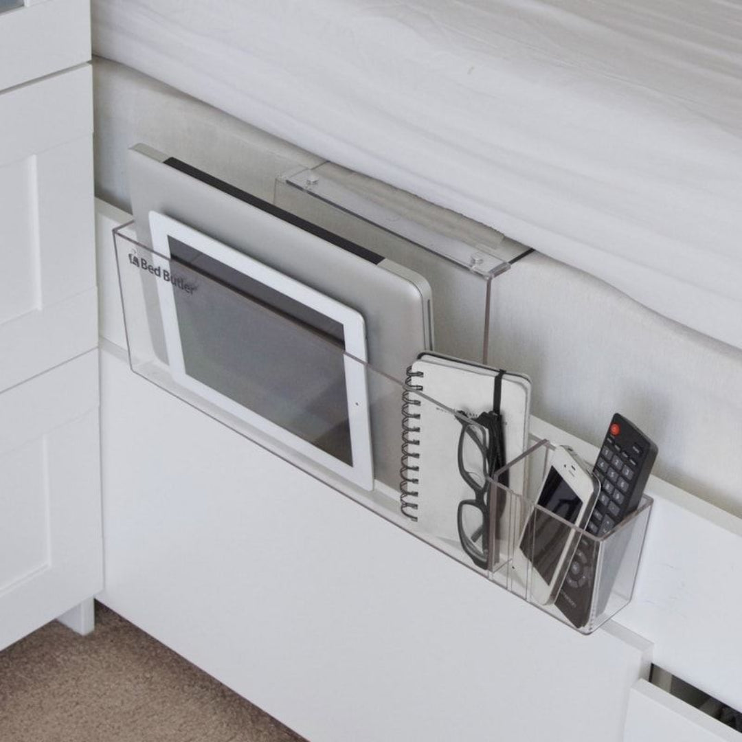 Bed Butler 2.0 je vrhunski organizator i polica za krevet, dizajniran da unese red i funkcionalnost u vašu spavaću sobu. Pruža dovoljno prostora za čuvanje laptopova do 17 inča, mobilnih telefona, daljinskih upravljača, časopisa i još mnogo toga!. Karakteristike:. Pogodan za laptopove do 17 inča. Dodatni prostor za mobilne telefone, daljinske, knjige i druge sitnice. Izrađen od 3/16″ ultra izdržljive reciklirane plastike. Može bezbedno da nosi teret do 6,3 kg. Pomaže u oslobađanju prostora na noćnom stočiću i krevetu. Idealno rešenje za organizaciju u malim prostorima. Napominjemo da se angažujemo kako bismo pružili najprecizniji opis proizvoda uz detaljne slike i cene. Međutim, moramo istaći da ne možemo garantovati potpunu tačnost svih informacija bez eventualnih grešaka.. Prikazana cena uključuje PDV!