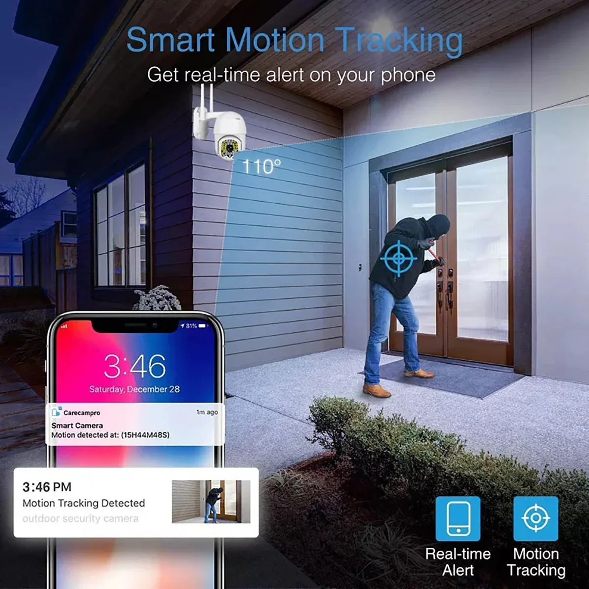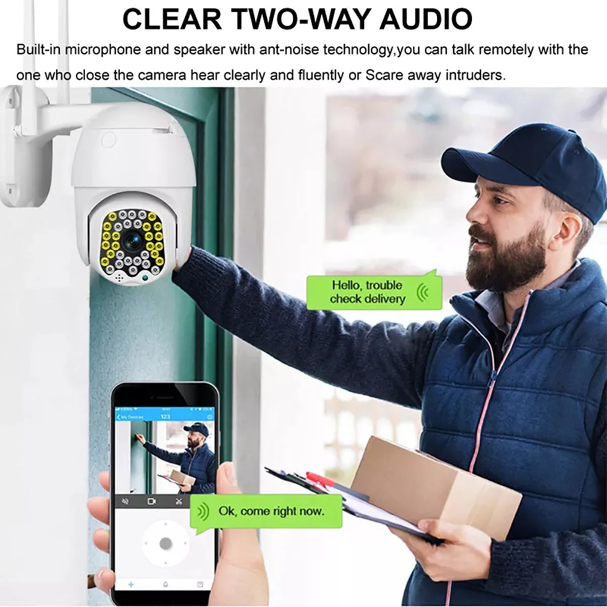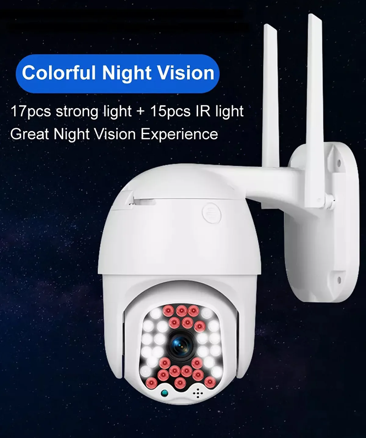 PTZ WIFI IP Kamera donosi pouzdanu sigurnost i jasnu Full HD (1080P) sliku uz širok ugao gledanja od 107°. Zahvaljujući PTZ funkciji rotacije (-10° do 180° tilt), kamera omogućava potpunu kontrolu i pregled prostora, dok color night vision osigurava da i u uslovima slabog osvetljenja imate čist i detaljan snimak.