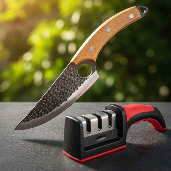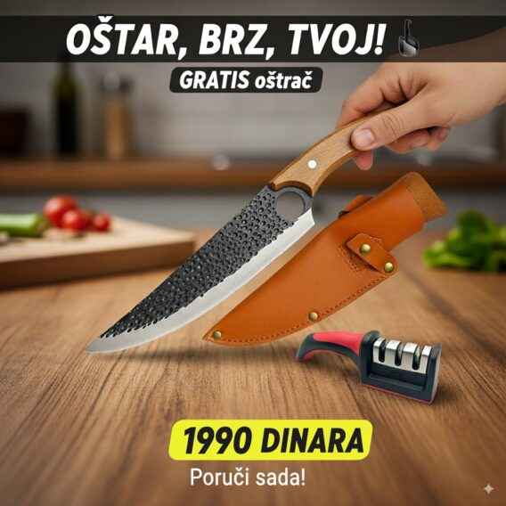 Ručno Kovani Kuhinjski Nož za Meso + Gratis Oštrač