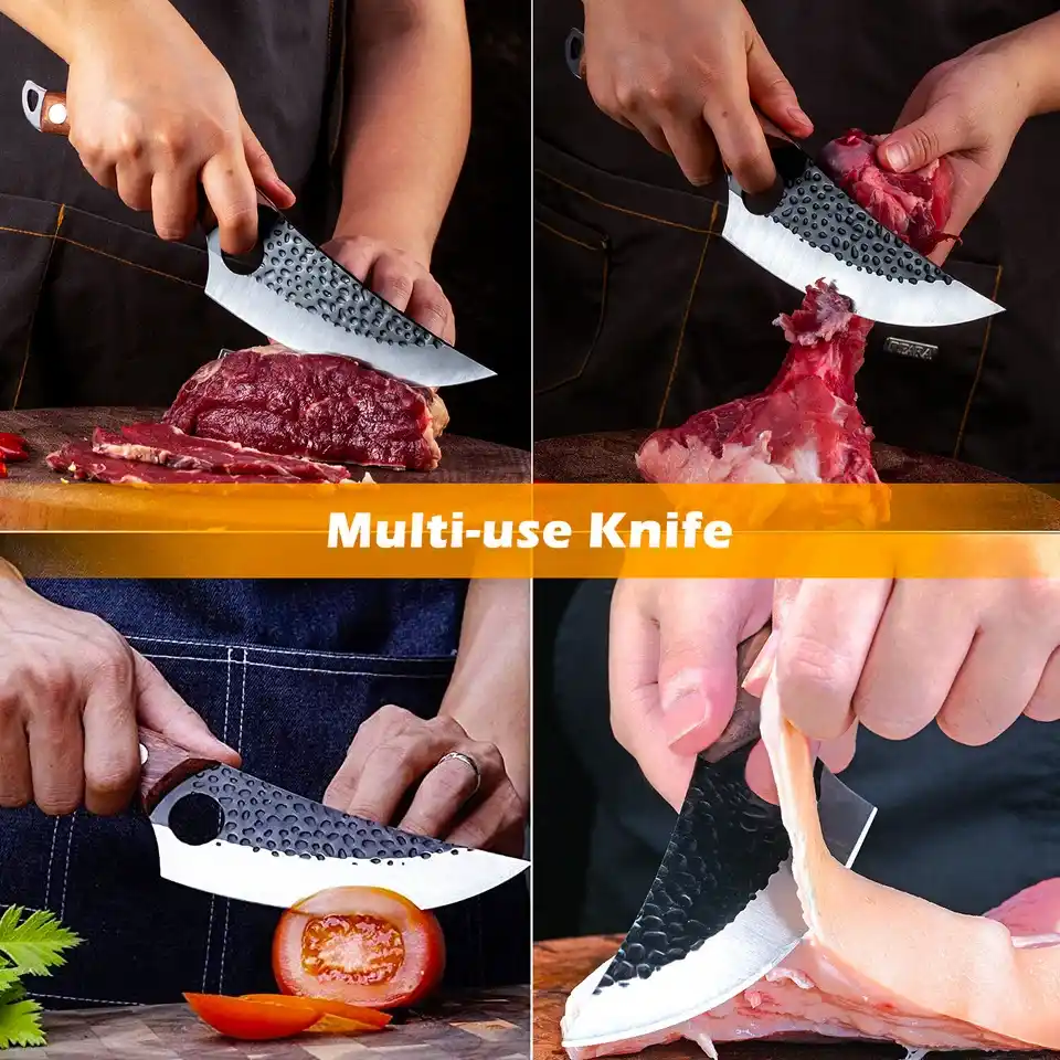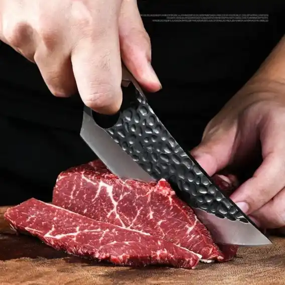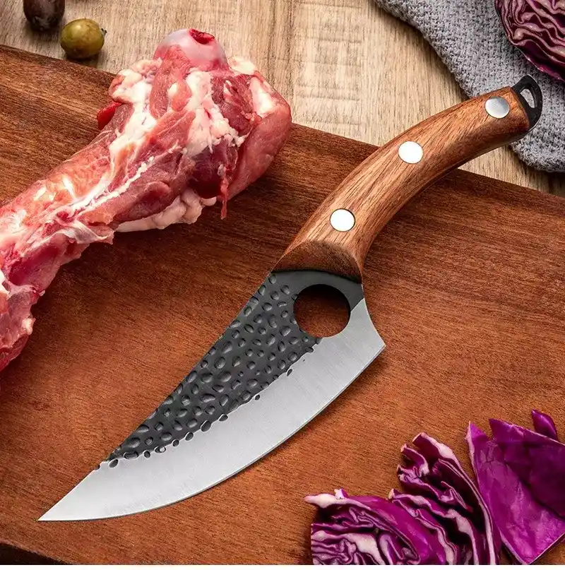 Upoznajte svog novog najboljeg saveznika u kuhinji – ručno kovani nož za meso izrađen od visokougljeničnog nerđajućeg čelika. Dizajniran za vrhunsku preciznost i dugotrajnu oštrinu, ovaj nož pruža savršen spoj majstorstva i funkcionalnosti. Bilo da ste profesionalni kuvar ili entuzijasta u sopstvenoj kuhinji – ovaj nož će podići vaše kuvanje na viši nivo.