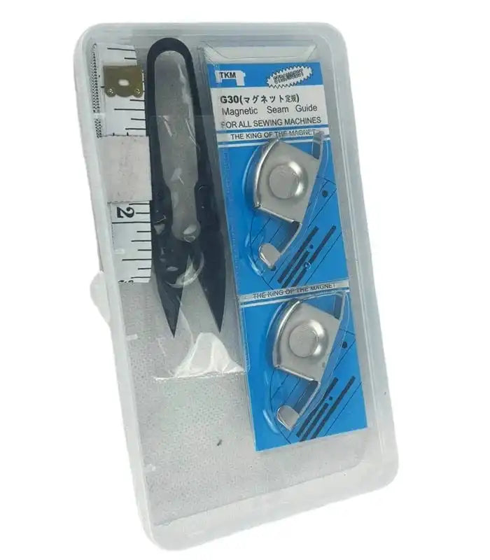 Set dodataka za šivaću mašinu je savršen alat za svakog ko se bavi šivenjem, bilo da ste početnik ili iskusni majstor. Ovaj set uključuje sve što vam je potrebno kako biste poboljšali svoje šivačke veštine i učinili rad bržim i efikasnijim.. Karakteristike:. Dva para magneta za šavove: Pomažu vam da držite tkaninu na mestu bez potrebe za iglom, posebno korisno kod teških tkanina ili u uskim prostorima.. Santimetar za precizno merenje: Idealno za precizno merenje dužine tkanine ili šava.. Papučica za sigurno podizanje i spuštanje igle: Obezbeđuje sigurno podizanje i spuštanje igle, smanjujući rizik od povreda.. Kvalitetne i oštre makazice: Pruža precizno sečenje tkanine ili konca, neophodne za svaki šivački projekat.. Ovaj set dodataka čini šivenje jednostavnijim i sigurnijim, omogućavajući vam da se fokusirate na kreativni deo svog rada. Sa svim potrebnim alatima na jednom mestu, vaš rad postaje brži, precizniji i lakši.. Prikazana cena uključuje PDV!. Napominjemo da se angažujemo kako bismo pružili najprecizniji opis proizvoda uz detaljne slike i cene. Međutim, moramo istaći da ne možemo garantovati potpunu tačnost svih informacija bez eventualnih grešaka.