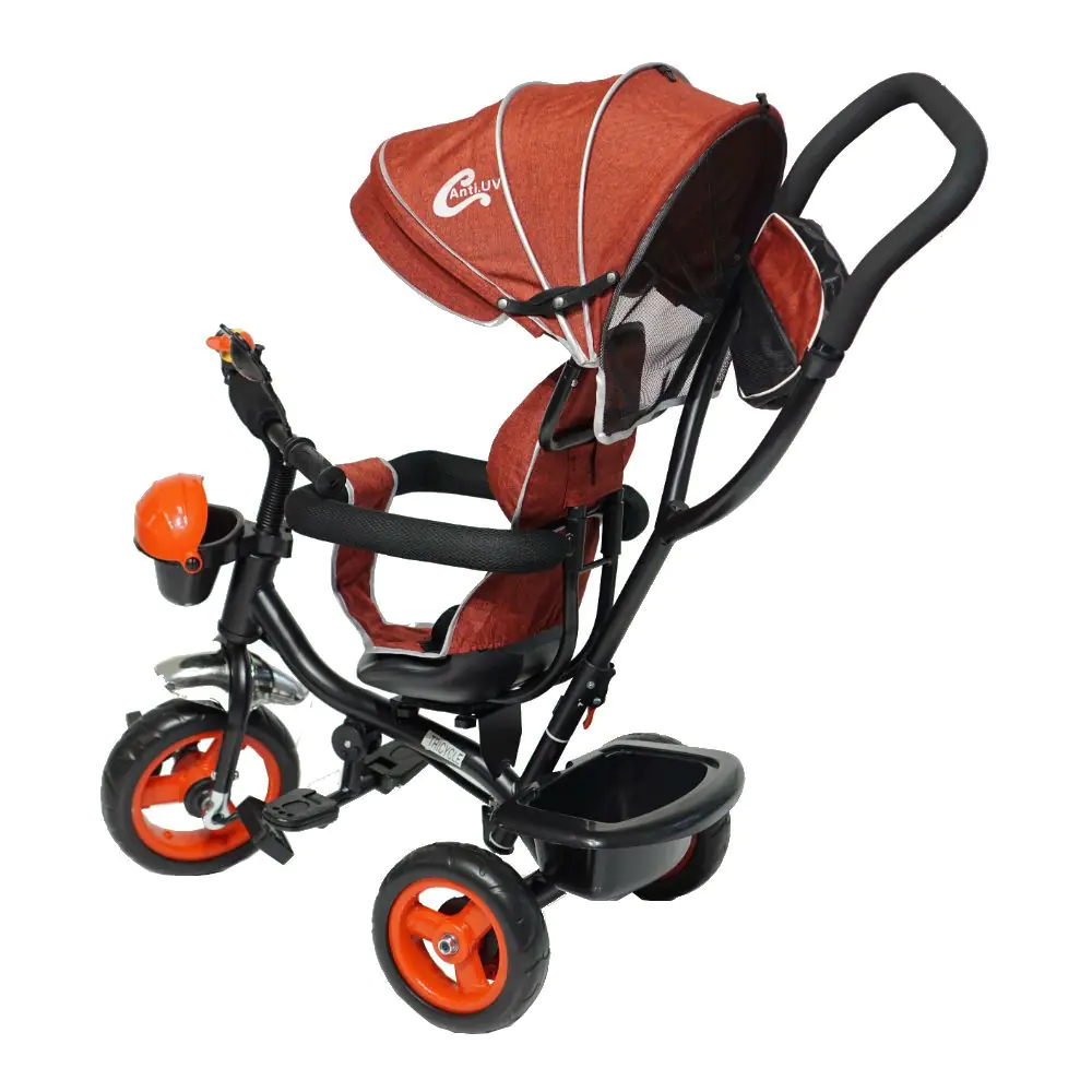 Napravljen od jake metalne konstrukcije sa platnenom tendom koja ima UV zaštitu.Točkovi od EVA pene i rotirajuće sedište.