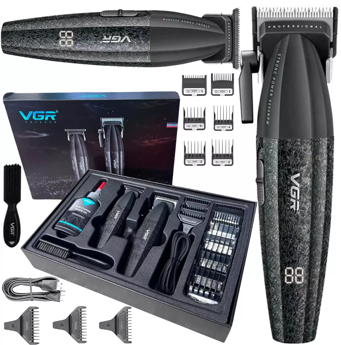 VGR V-640 je jedan od najjačih i najkompletnijih barber setova u klasi. Napravljen za profesionalce i za kućnu upotrebu, kombinuje moćan motor, vrhunske oštrice, dugu bateriju i preciznu kontrolu, uz sve dodatke koji ti omogućavaju savršeno šišanje bez muke.