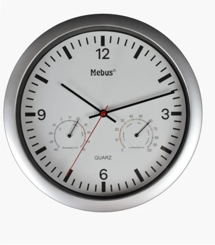 Kvarcni zidni sat Mebus je savršen dodatak za svaki prostor, kombinujući preciznost u merenju vremena sa funkcijama za praćenje temperature i vlažnosti vazduha. Sa prečnikom od 25,5 cm, ovaj sat ne samo da je funkcionalan, već i estetski privlačan, i l…