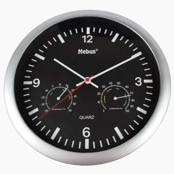 Unesite funkcionalnost i eleganciju u svoj prostor sa Mebus kvarcnim zidnim satom. Ovaj sat ne samo da prikazuje tačno vreme, već vam pruža i informacije o temperaturi i vlažnosti vazduha. Sa prečnikom od 25,5 cm, on će postati upečatljiv detalj u vašem domu.. Karakteristike:. Prečnik: 25,5 cm. Funkcije: Prikazuje vreme, temperaturu i vlažnost vazduha. Materijal: Ram od plastike. Boja rama: Srebrna. Boja unutrašnjosti: Crna. Baterija: 1 x 1,5 V. Prikazana cena uključuje PDV!. Napominjemo da se angažujemo kako bismo pružili najprecizniji opis proizvoda uz detaljne slike i cene. Međutim, moramo istaći da ne možemo garantovati potpunu tačnost svih informacija bez eventualnih grešaka.